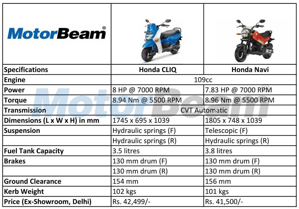 Honda Cliq Vs Honda Navi Compare Price Mileage Specifications